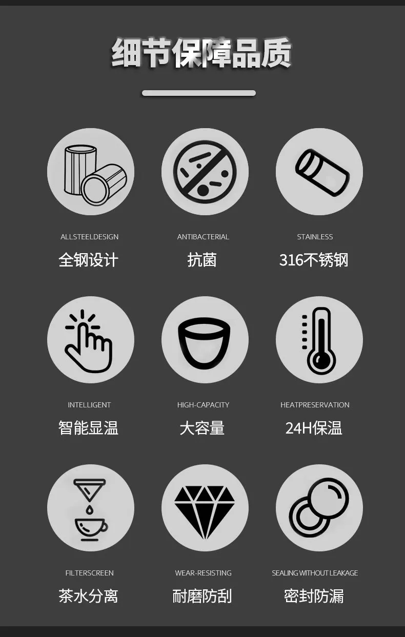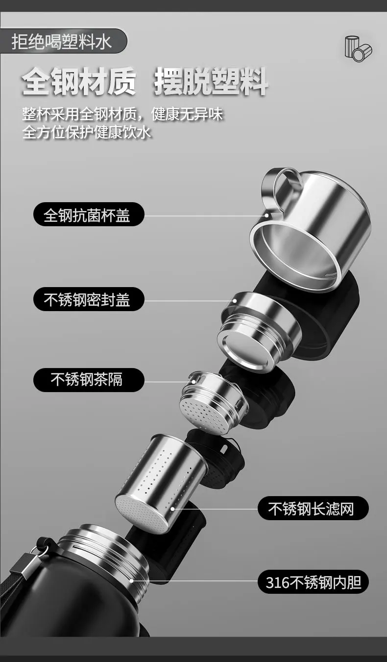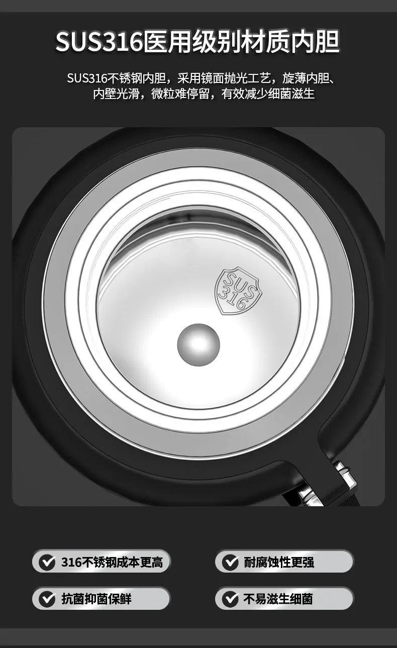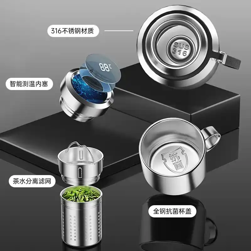 Food-grade 316 inner + 201 outer stainless steel, BPA-free, no chemical coating. Comes in gift box, perfect for men, women, students, and elderly.
